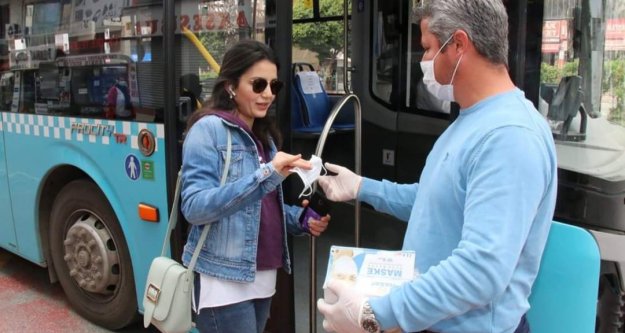 Toplu taşıma şoförleri ve tramvay duraklarında bulunan güvenlik görevlilerine teslim edilen maskeler toplu taşıma araçlarını kullanan vatandaşlara dağıtıldı. Başkan Muhittin Böcek, maskesiz vatandaşların şoförler tarafından uyarılacağını belirterek, takmayanların toplu ulaşım araçlarına alınmayacağını söyledi.