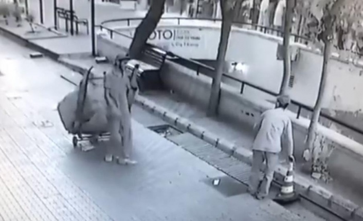 Antalya’da çek çek tabir edilen araç ile ana cadde üzerinde bulunan mazgalları çalan 2 kişinin rahat tavırları ‘pes’ dedirtti. Hırsızlık anları ise bir işyerinin güvenlik kamerası tarafından saniye saniye kaydedildi.
