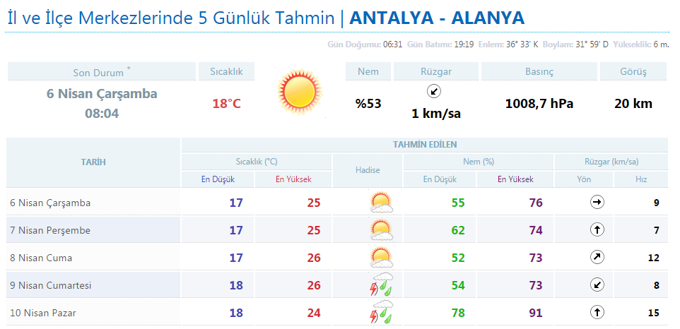 Alanya'da Mart ayından itibaren sıcak geçen günlerin ardından, Meteoroloji Genel Müdürlüğü uyarı yaptı. Cuma gününe kadar güneşli olarak seyredecek hava, haftasonunu kendini yağışa bırakacak. Sıcaklık haftasonu da en yüksek 25 -26 derecelerde olacak.
