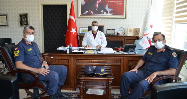 Alanya’ya yeni atanan Jandarma Komutanı Yarbay Engin Burak Mindivanlı ile İlçe Jandarma karakol Komutanı Yusuf Tokcan ALKÜ Alanya Eğitim ve Araştırma Hastanesi Başhekimi Prof. Dr. Hüseyin Lakadamyalı'yı makamında ziyaret etti. Prof. Dr. Lakadamyalı Mindivanlı'ya ziyaretten dolayı duyduğu memnuniyeti dile getirerek yeni görevinde başarılar diledi. Ziyaret esnasında karşılıklı fikir alışverişinde bulundu.