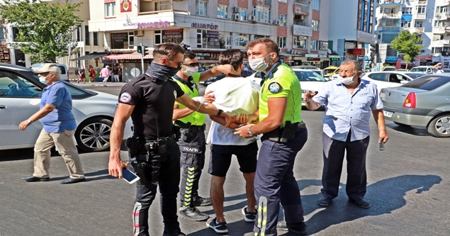 Olay, Muratpaşa ilçesi Güllük Caddesi'nde 16.20 sıralarında meydana geldi. Edinilen bilgiye göre, pizza siparişi için motosikletle yola koyulan Yusuf Dursun (18) kırmızı ışıkları 2 metre geçip motorunun üzerinde gideceği adrese cep telefonundan bakmaya başladı. Bu sırada kavşakta bekleyen trafik polisleri, gençten kimliğini vermesini istedi. Kuryelik yaptığını belirten Dursun, cep telefonundan pizza siparişi götüreceği adrese baktığını söyleyip kimlik vermek istemedi. Bunun üzerine trafik polisleri ile genç arasında tartışma yaşandı.