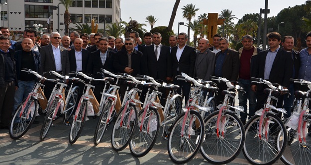 Törende bir konuşma yapan Antalya Büyükşehir Belediyesi Alanya Koordinatörü Hüseyin Güney, “ Antalya Büyükşehir Belediyesi olarak Antalya ve Alanya genelinde çok büyük yatırımlar yapmanın yanı sıra toplumumuza yönelik sosyal projelere hem destek veriyoruz hem de belediye olarak gerçekleştiriyoruz. Bu kapsamda Sağlık Bakanlığı’nın başlattığı “ sağlık için pedalla “ sosyal sorumluluk projesine Antalya Büyükşehir Belediyesi olarak tam destek veriyoruz. hem belediye birimlerinde çalışanlara hem de mahalle muhtarlarımıza bisiklet dağıtımı gerçekleştiriyoruz. Daha önce 102 mahalle muhtarımıza bilgisayar hediye etmiştik. Şimdi de muhtarlarımızın bu sosyal projeye katkı sağlamalarını temin etmek amacıyla bisiklet dağıtımı gerçekleştiriyoruz. Umarım başlatılan bu proje amacına ulaşır. şimdiden muhtarlarımıza bisikletleri hayırlı uğurlu olsun “ dedi.