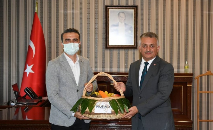Müstakil Sanayici ve İşadamları Derneği (MÜSİAD) Alanya Şubesi Antalya Valisi Ersin Yazıcı'yı makamında ziyaret etti. Ziyarette vali yazıcıya meyve sepeti hediye edildi.