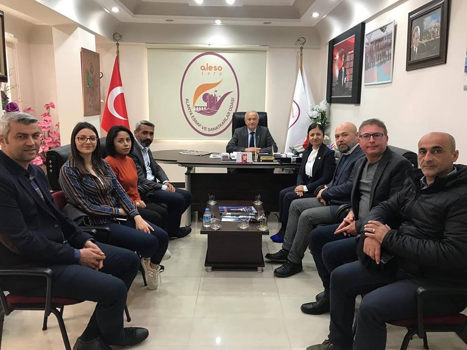 ALTSO'nun ardından Alanya Esnaf ve Sanatkarlar Odası (ALESO) Başkanı Nuri Demir'i ziyaret eden Coşkun ve ekibi, esnaf ile ilgili konularda Demir'den bilgi aldı. Unutulmaya yüz tutan mesleklerin konuşulduğu sohbette Demir, yorgancılığın ve kalaycılığın giderek azaldığını, özellikle kadın terzi sayısının arttığını belirtti. Esnafının kalkınması için gerekli bütün çalışmaları yaptığını söyleyen Demir, gazetecilere kendilerine verdikleri desteklerden dolayı teşekkür etti..jpg)
