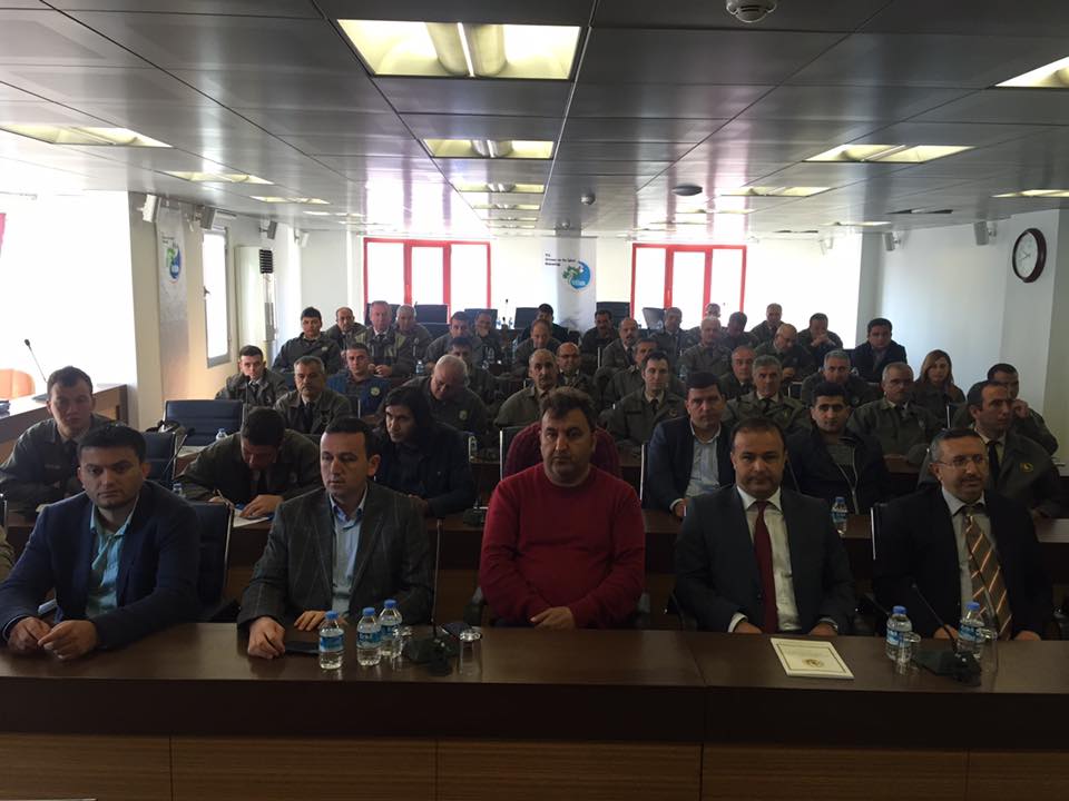 Daha sonra OZM Şube Müdürü, Şube Mühendisi Sayın Yavuz Kabak ve Cumhuriyet Savcısı Sayın Mehmet Sarıkaya tarafından ormanların kanun dışı müdahalelere karşı korunması, arama, el koyma ve suçüstü halı, orman zararlıları ile ilgili tedbirler, nakliye işlemleri, 305 sayılı tebliğ, kılık kıyafet temsil gücü hakkında ayrıntılı sunum yapıldı.