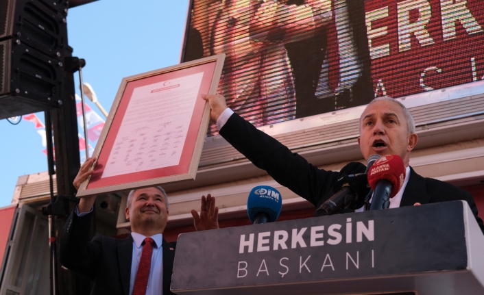CHP Alanya Belediye Başkan Adayı Osman Tarık Özçelik sözlerine “İnançlıyız. İnanıyoruz. Ekibimize güveniyoruz. Mucize peşinde değiliz. Planlayacağız, organize olacağız, birlikte hareket edeceğiz. İşbirliği ve katılım sağlayacağız. Ortak akıl oluşturacağız. Yönetimimiz şeffaf olacak, hesap verebilir olacak, Denetleyen ve denetlenen olacağız. İlk adım olarak yol arkadaşlarım ile sizlere verdiğimiz sözlerimizi seçim manifestosu haline getirdik. Doğru, dürüst, şeffaf yönetilen bir Alanya için hepimiz birbirimize söz verdik. Altına imzalarımızı attık… Çünkü söz uçar, yazı kalır.” dedi. Özçelik, ilçe Başkanı Bülent Kandemir ve tüm meclis üyelerinin de imzaladığı Seçim Manifestosunu çerçeveli olarak sahneden gösterdi. Özçelik’in açıkladığı manifesto da şu sözler yer aldı: “Huzurlu yaşamak, dürüst yönetmek, çocuklarımıza daha güzel bir Alanya bırakmak için yola çıktık. Cumhuriyetimizin ikinci yüzyılına yakışır, planlı, kurallı, kimlikli bir Alanya için durmaksızın çalışacağız. Her alanda parlayacak, her kesimden her bir insanımızın daha mutlu, daha huzurlu olduğu, marka değeriyle dengeli olarak kalkınan bir kenti hep birlikte inşa edeceğiz. "Birleş Alanya" çağrısıyla yola çıkıyoruz, çünkü biliyoruz ki bir araya geldiğimizde, Alanya için hayallerimizi gerçekleştirmek daha da kolay olacak. Hoşgörü ve saygıyla, hakça paylaşıp hesap veren bir anlayışla, sosyal belediyeciliği her mahallemize yayacağız. Her bir vatandaşımız, “Bu şehrin yönetiminde ben de söz sahibi oldum.” diyebilecek. Turizmi ve tarımıyla güçlenen, üreten, istihdam yaratan, teknolojiyi tüm alanlarda kullanan, kısacası potansiyelini kullanan bir Alanya’yı hep birlikte oluşturacağız. Emeklisi, işçisi, memuru, esnafı, sanayicisi, çiftçisi, öğrencisi, kadını, genci, engellisi, velhasıl tüm yurttaşlarımızın, hep birlikte mutlu ve huzurlu yaşadığı, birbirine destek olan, dayanışmayı ön planda tutan bir kent olacağız. Tüm bu ilkelerimizi tavizsiz uygulayacağımıza dair, kentimize, kendimize ve çocuklarımıza karşı bozulmaz sözümüzdür.”