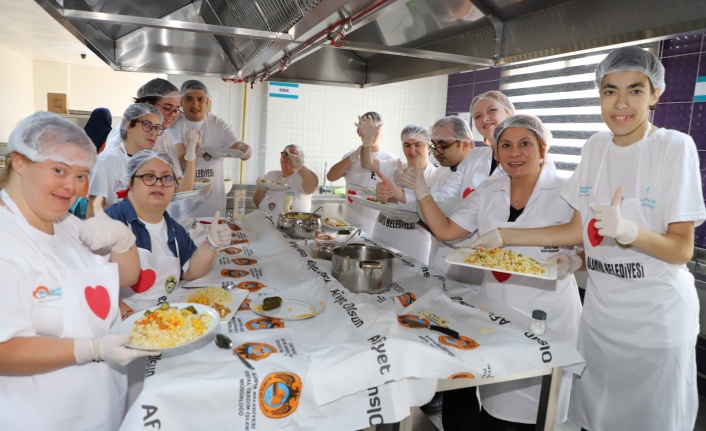 Alanya Belediyesi Engelli Koordinasyon Merkezi üyesi özel bireyler, Engelsiz Mutfak Atölyesi çalışması kapsamında Oba Kız Öğrenci Yurdu mutfağında öğle yemeği menüsü hazırladı.