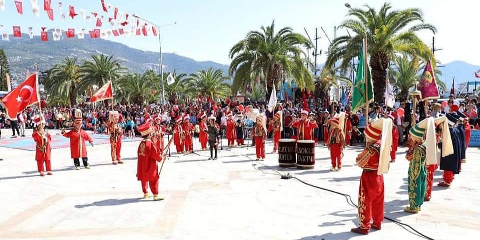 Ulu Önder Gazi Mustafa Kemal Atatürk’ün tüm dünya çocuklarına armağan ettiği 23 Nisan Ulusal Egemenlik ve Çocuk Bayramı, Alanya Kültür Merkezi’nde 6 ülke ve 8 kardeş şehirden 120 misafirin de katılımıyla coşku içerisinde kutlandı. Parlayüksel İlkokulu Mehter Takımı ise sınıf öğretmenleri Hayat Uysal önderliğinde izleyenlere muhteşem bir gösteri sundu.