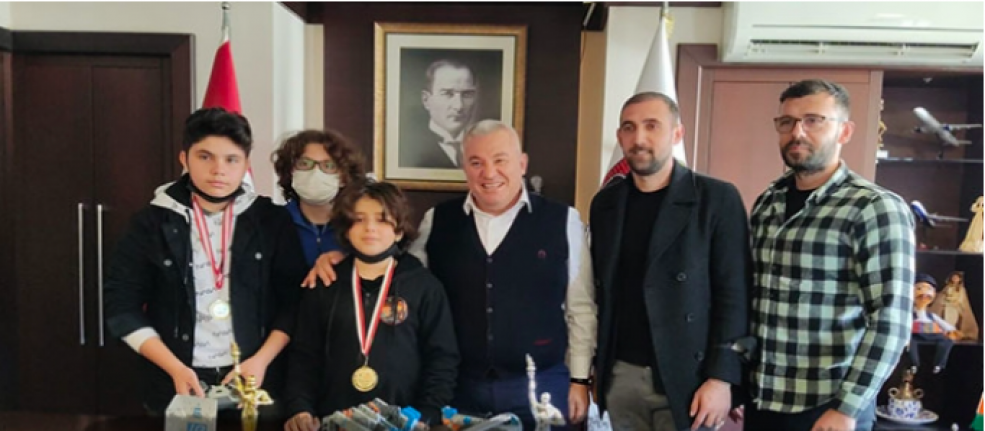 Alanya Robotik Kodlama Atölyesi hocası Onur Ayhan ve Aykut Simay, Uluslararası “Vex IQ Challange” yarışmasında yaptıkları robotla şampiyon olan öğrenciler Artun Efe Sabah, Mahir Yıldız ile Uğur Bozhöyük, Alanya Ticaret ve Sanayi Odası (ALTSO) Başkanı Mehmet Şahin’i ziyaret etti.Öğrencilerle yakından ilgilenen Şahin, Alanya Robotik Kodlama Atölyesi Hocası Onur Ayhan ve Aykut Simay, Uluslararası “Vex IQ Challange” yarışmasında yaptıkları robotla şampiyon olan öğrenci kardeşlerimiz Artun Efe Sabah, Mahir Yıldız ile Uğur Bozhöyük bizleri ziyaret etti.