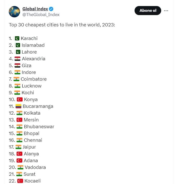 Sosyal medyada şaşırtıcı bir bilgi ile karşılaştığını söyleyen Kırklareli Vali Yardımcısı, Alanya eski Kaymakamı Hasan Tanrıseven, “Yüzbinlerce takipçisi olan Global Index adlı hesapta dünyanın en ucuz şehirleri sıralanmış. Dünyanın en ucuz şehirleri listesinde ilk 30 şehir arasında Türkiye’den 5 şehir yer alıyor. Buna göre dünyanın en ucuz şehirleri sıralamasında Konya 10., Mersin 13., Alanya 18. Adana 19. Kocaeli 22. ve Eskişehir 28. sırada yer alıyor. Listeyi görünce çok şaşırdım. Konya’nın ucuz bir kent olduğunu biliyorum ama Alanya’nın dünyanın en ucuz kentleri sıralamasında onsekizinci sırada yer alması sürpriz oldu. Çünkü sosyal medyada son zamanlarda hep Alanya’nın pahalı bir kent olduğuna dair yakınmalar okuyordum. Global Index, verileri dünyada hayat pahalılığı ile ilgili araştırma yapan Numbeo adlı siteden almış. Numbeo’nun sitesinde Alanya ile ilgili çeşitli mal ve hizmetlerin fiyatları yer alıyor. Onları da ekledim. Alanya’daki dostlara soralım. Hayat pahalılığı ile aranız nasıl? Ne dersiniz Alanya, gerçekten de dünyanın en ucuz kentlerinden biri mi?” diye sordu.