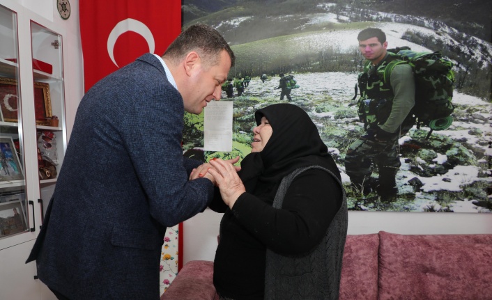 Şehit aileleri ve gazilerin Ramazan Bayramını kutlayan Kaymakam Ürkmezer.