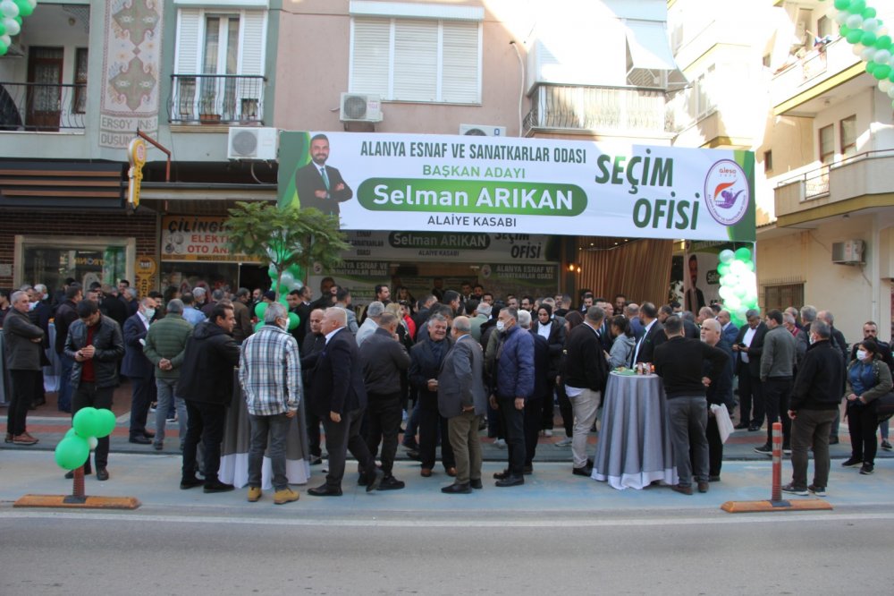 Alanya Hacımemişler Camii yanındaki seçim ofisinin açılışına Alanya Belediye Başkanı Adem Murat Yücel, ALTSO Başkanı Mehmet Şahin, Ak Parti Teşkilat Başkanı Mustafa Toklu, CHP İlçe Başkanı Çoşkun Karadağ, MHP İlçe Başkanı Mustafa Türkdoğan ile çok sayıda üye katıldı. Açılışa Alanya Esnaf ve Sanatkarlar Odası Başkanı Nuri Demir ile yönetimi de katıldı.