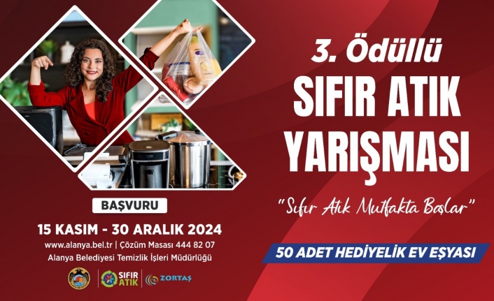 Gerçekleştirdiği sıfır atık çalışmalarıyla Türkiye’de örnek bir belediye haline gelen Alanya Belediyesi, 2 yıldır düzenlenen ve büyük ilgi gören “Sıfır Atık Mutfakta Başlar” yarışmasını bu yıl da düzenliyor. Başvuruların 15 Kasım’da başlayacağı yarışma 30 Aralık’a kadar devam edecek.