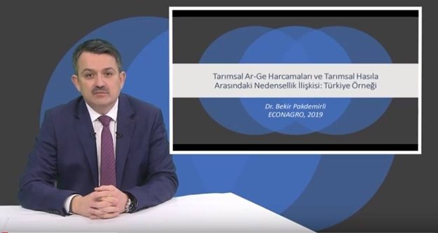 Alanya Alaaddin Keykubat Üniversitesi (ALKÜ) İşletme Fakültesi Ekonomi ve Finans Bölümü tarafından 25-26 Nisan’da düzenlenen 3. Uluslararası Gıda ve Tarım Ekonomisi (ECONAGRO)’unun ikinci günü, Tarım ve Orman Bakanı Dr. Bekir Pakdemirli’nin video sunumu ile devam etti. Video konferans ile ECONAGRO’ya katılım gösteren Pakdemir’li, kongreye katılan akademisyenlere, ‘Tarımsal Ar-Ge Harcamaları ve Tarımsal Hâsıla Arasındaki Nedensellik İlişkisini ve Türkiye Örneğini’ içeren konuşmasında bilimsel araştırma faaliyetlerinin tarım gelirleri üzerindeki önemli etkisini vurguladı. Pakdemirli sunum yaptığı makalesinde, diğer ekonomik faaliyetlerde olduğu gibi, tarımsal faaliyetlerde de inovasyonun, verimlilik artışının, ekonomik büyüme ve kalkınmanın ana motorunun Ar-Ge harcamaları olduğunu vurguladı. Bakan Pakdemirli, “Çalışmanın hem grafiksel, hem de ekonometrik analiz sonuçlarına bakıldığında, Ar-Ge harcamalarının tarım sektöründe büyümeyi kısa ve uzun dönemde pozitif olarak etkilediği görülmektedir. Bu kapsamda, ülkemizin önümüzdeki dönemde de tarımsal büyümeyi devam ettirmesi ve uluslararası düzeyde rekabet gücünü koruması için Ar-Ge harcamalarının artarak devam etmesi gerekmektedir. Artan Ar-Ge harcamaları, verimlilik artışı sağlayacak ve ekonomik büyümeye önemli katkı sağlayacaktır” dedi.