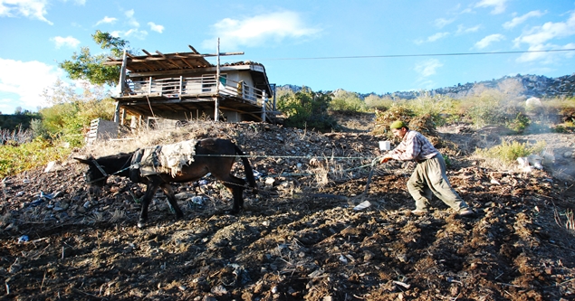 Akseki’nin Kepez Mahallesi’nde yaşayan Bayram Güven (78), eşi Ayşe Güven (67) ile yıllardır öküzlerinin arkasına bağladıkları kara sabanla tarlayı sürerek buğday ekiyor. İHA muhabirine açıklama yapan Bayram Güven, yaklaşık 50-55 yıldır kara sabanla çift sürdüğünü belirterek, buradan elde ettikleri ürünle geçimlerini sağladıklarını söyledi. Güven, 18 yaşına kadar çobanlık yaptığını ifade ederek askerliğinin ardından aldığı 4 büyükbaş hayvanla tarlasını sürerek çiftçilik yapmaya başladığını dile getirdi. Köy arazisinin sarp olması nedeniyle motorlu araçların tarlaya giremediğini anlatan Güven, "Düz arazimiz olmadığı için devamlı öküzlerle çift sürüyorum. Bu arazide traktörün çift sürmesi imkansız. Bu nedenle öküzler, bizim hayatımızın vazgeçilmezi. Onlara gözümüz gibi bakıyoruz. Öküzlerle ektiğim mahsul iyi oluyor. Öküzlerle tarlayı ekmek, daha zevkli oluyor" diye konuştu.