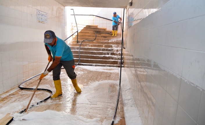 Alanya Belediyesi Temizlik İşleri Müdürlüğü ekipleri; arazözler, süpürge makinaları ve personelin yoğun çalışmasıyla bayrama hazırlandı. Şehrin dört bir yanında temizlik çalışmalarını sürdüren ekipler; cami ve ibadethanelerin yıkanmasını yaparken aynı zamanda sahiller, ören yerleri, piknik alanları ve sosyal yaşam alanlarının temizliklerini hassasiyetle sürdürüyor. Kentin işlek bölgelerindeki yollar ve kaldırımlarda da temizlik çalışması yapan ekipler, çöp konteynırları ve tepegözleri de temizliyor.