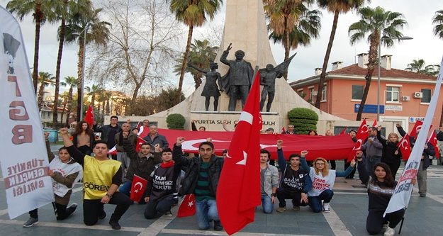 'Buradan ülkemizi Atatürk Gençliği olarak hiçbir güce böldürtmeyeceğiz. Buradan Amerika ve tetikçilerine tüm öfkemiz ile haykırıyoruz. Düşmanı nasıl 18 Mart'ta Çanakkale'de, 30 Ağustos'ta Afyon'da, Uşak'ta, İzmir'de nasıl beklemedikleri zaman denize döktüysek bugünde aynı kararlılıkla mücadele azmimiz artarak devam etmektedir. Atatük gençliği görev başındadır.'