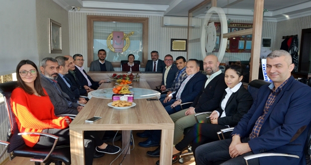 AK Parti İlçe Başkanı Mustafa Toklu, Alanya Serbest Muhasebeciler ve Mali Müşavirler Odası (ALSMO) Başkanı Kerim Gökçeoğlu ve yönetim kurulu üyeleri Alanya Gazeteciler Cemiyeti (AGC) Başkanı Gaye Coşkun'a hayırlı olsun ziyaretinde bulundular.