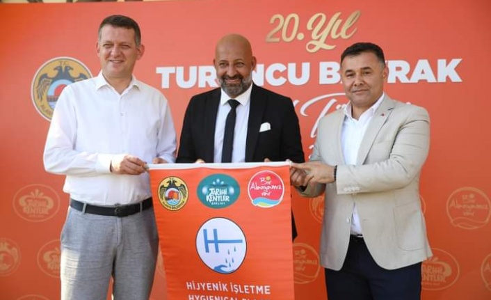 Başkan Yücel konuşmasını şu ifadelerle tamamladı: “Sürekli gelişen, büyüyen ve nüfusu artan şehrimizde kalite ve değerimizden ödün vermeden talepleri karşılamak, kentimizde yaşayan insanlarımızı mutlu etmek ve buraya turist olarak gelen misafirlerimizi bu şehirden memnun şekilde ayrılmalarını sağlamak için her birimizin sorumluluğu. Alanya’mızın değerini korumak için hep birlikte mücadele edip, hep birlikte aynı idealler için azimle çalışmalıyız. Biz bu şehri her şeyiyle bir bütün olarak görüyoruz. Herkes işini en iyi şekilde yapmaya çalışırsa birçok sorunumuzun kendiliğinden çözüleceğine inanıyorum. Alanya Belediyesi olarak kentimizin marka değerini güçlendirmek için sosyal ve kültürel birçok çalışma gerçekleştiriyoruz. Turizmin parlayan bir yıldızı olan Alanya’mız, son yıllarda alternatif turizm seçenekleri ile de marka değerini arttırmaktadır. Belediyemizin yürüttüğü Mutfak Mirası çalışmalarıyla Alanya’mız, gastronomi turizminde de öne çıkan bir turizm destinasyonu olmuştur ve gastronomi turizmi rotalarında yer almaya başlamıştır” şeklinde konuştu. Alanya Kaymakamı Fatih Ürkmezer de Alanya’daki tesislere ilgi ve alakalarından dolayı teşekkür ederek, turizm için çok önemli bir projenin içerisinde yer alındığının altını çizdi. Konuşmaların ardından işletmelere Turuncu Bayrakları protokol üyeleri tarafından verildi.
