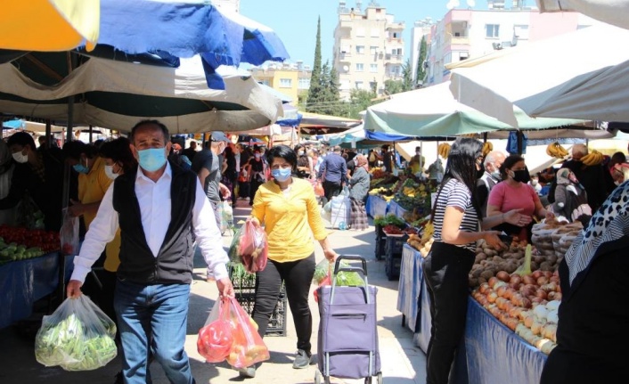 Yeni tip korona virüsle mücadele kapsamında uygulanan 2 günlük sokağa çıkma kısıtlaması bu hafta 23 Nisan Ulusal Egemenlik ve Çocuk Bayramı’nın resmi tatil olmasıyla 3 güne uzatıldı. Kısıtlama bu akşam saat 19.00’da başlayıp, pazartesi günü saat 05.00’da sona erecek. 3 günlük sokağa çıkma saatinin yaklaşmasıyla birlikte Antalya’da vatandaşların adresi semt pazarları oldu. Vaka artışının devam ettiği kentte yoğunluğun fazla olduğu semt pazarlarında, denetimler sıklaştırıldı. Muratpaşa ilçesindeki Meltem açık halk pazarında da vatandaşlar yoğunluk oluşturdu. Kontrolü elinde bulundurmak isteyen Muratpaşa Belediyesi zabıta ekipleri demir bariyerlerle çevirdiği pazarın giriş noktalarında ateş ölçümü ve maske denetimi yaptı. Maske kuralına uyulan pazarda zaman zaman sosyal mesafe kuralı ihlal edildi. Vatandaşların daha çok sebze meyve ve balık tezgahları önünde yoğunluk oluşturduğu görüldü.