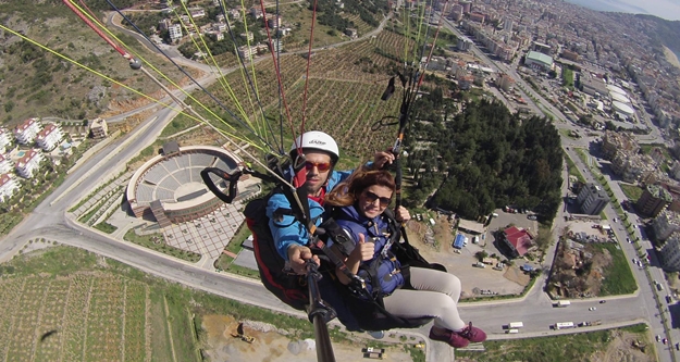 Alanya Kaymakamlığı Proje Koordinasyon Birimi ve Alanya Yamaç Paraşütü Topluluğu, 8 Mart Dünya Kadınlar Günü nedeniyle “Kadına Şiddete Hayır” demek ve farkındalık yarattırmak amacıyla, yamaç paraşütü etkinliği düzenledi. Alanya Kaymakamlığında görev yapan bayan memurlar da etkinliğe katıldılar. Denizden 900 metre yükseklikteki Yassıtepe’den havalanan paraşütler, Kleopatra Plajı’na indi.