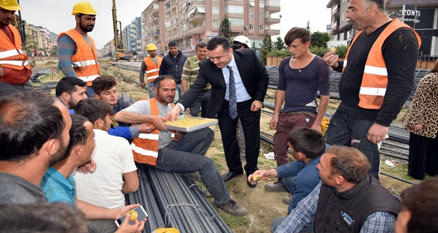 İlk olarak Telekom Kavşağında çalışan işçileri ziyaret eden Başkan Yücel, daha sonra Ticaret Lisesi Kavşağı, 50 metrelik Çevreyolu’na bağlantı sağlayacak Köprülü Kavşak inşasında çalışan işçileri ziyaret etti. İşçilerle birlikte tatlı yiyen Başkan Yücel, işçilerle bir süre sohbet etti.