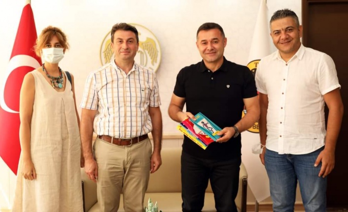 Alanya Belediye Başkanı Adem Murat Yücel, Alanya İlçe Milli Eğitim Müdür Vekili Mustafa Erdoğan, Bilim Sanat Merkezi Müdürü Gökhan Akçay ve Resim Öğretmeni Hale Çevik'i makamında ağırladı.