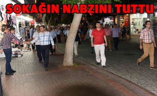 Alanya Belediye Başkanı Adem Murat Yücel, dün akşam başkan yardımcıları ve meclis üyeleri ile birlikte merkezde Çarşı ve Cuma Pazarı esnafını ziyaret etti.