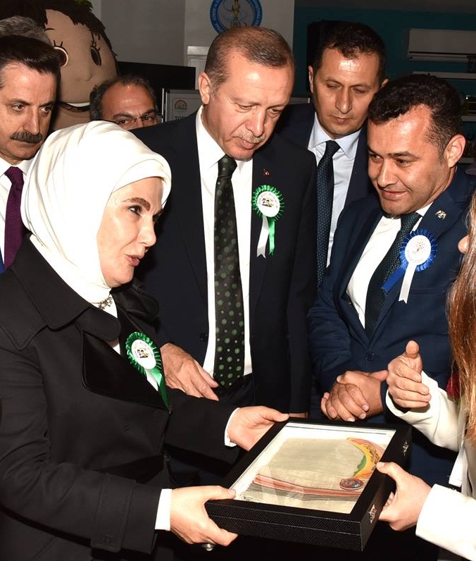 Cumhurbaşkanı Recep Tayyip Erdoğan ve eşi Emine Erdoğan, kendilerine hediye edilen Alanya Belediyesi’nin öncülüğünde Alanyalı kadınların yaptığı ipek kozası şakayık çiçeği tablosu ile yine Alanya Belediyesi’nin başlattığı ve geliştirdiği muz lifi dokumasını çok beğendiklerini ifade etti. EXPO’nun da simgesi olan ipek kozasını yakından inceleyen Erdoğan çifti, Alanya standında sergilenen Alanya’nın yerel el sanatları ürünleri hakkında bilgi aldı. Başkan Yücel’e Alanya hatırası hediyeler için teşekkür eden Cumhurbaşkanı Erdoğan, tablolar ile fotoğraf çektirdi