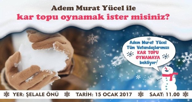 Alanya Belediye Başkanı Adem Murat Yücel, çocuklara ve vatandaşlara kar hizmeti de veriyor. Yücel, aracı olmadığı için Toroslarda kar görmeye gidemeyen vatandaşlar ve çocukların ayağına karı getiriyor. Yarın saat 11.00'de, İskele Şelale önünde, Toroslardan kamyonlarla getirilecek kar ile Yücel, çocuklar ve vatandaşlarla kar topu oynayacak. Başkan Yücel, yarın protokol üyeleri ile bisiklet yarışında bisiklet sürdükten sonra İskele'ye geçerek, kara gidemeyen vatandaşlar ve çocuklarla kar topu savaşı yapacak.