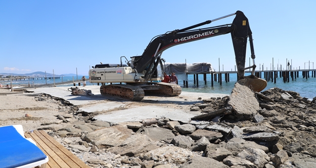 Alanya genelindeki kaçak yapılarla mücadelesini sürdüren Alanya Belediyesi ekipleri, Oba Mahallesi’nde hizmet veren bir turistik tesisin sahil bandına döktüğü betonu iş makineleriyle tıraşlanarak, Kıyı Kanuna uygun hale getirdi.