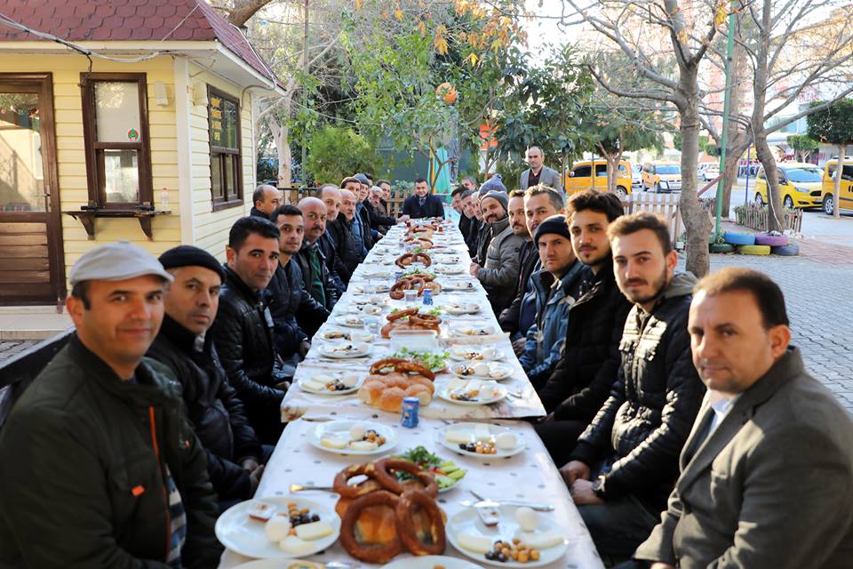 Alanya Belediye Başkanı Adem Murat Yücel, Alanya Şoförler Odası Başkanı Recep Çalış ve esnafın daveti üzerine bugün sabah kahvaltısında Mahmutlar Birlik Taksi Durağı şoförleriyle bir araya geldi. Esnafla bol bol sohbet etme imkanı bulan Başkan Yücel kahvaltının ardından taksi durağı sakinleriyle hatıra fotoğrafı çektirdi. Şoförler Odası Başkanı Çalış ve esnaf dostlarına nazik davetleri için teşekkür ettiğini belirten Yücel, “Mahmutlar Birlik Taksi Durağı'nın değerli şoförleriyle kahvaltıda bir araya geldik. Esnafımızın talep ve önerilerini dinledik. Şoförler Odası Başkanımız Recep Çalış ve esnafımıza nazik daveti için teşekkür ediyor, işlerinde bereketli kazançlar diliyorum” dedi.