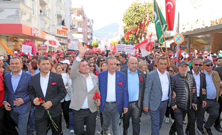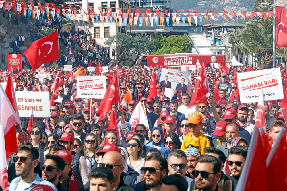 Cumhur İttifakı Alanya Belediye Başkanı Başkan Adayı Adem Murat Yücel’in Büyük Yürüyüşü 20 binin üzerinde vatandaşın katılımı ile büyük bir coşkuyla gerçekleştirildi. Damlataş’tan pankartlar, bayraklar ve sloganlarla yürüyen kalabalık, İskele Şelale alanında Başkan Yücel’in mitingine katıldı. ‘İşte meydanın gerçek sahibi burada’ diyen Başkan Yücel, “Bu coşku, bu kalabalık, bu heyecan büyük bir zaferin habercisi.” dedi.