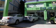 Otomobilin çarptığı park halindeki araç dükkana girdi
