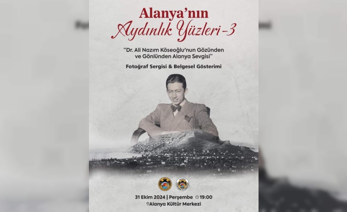 Alanya tarihinde önemli bir yer edinmiş olan Dr. Ali Nazım Köseoğlu’nun hayatını ve Alanya’ya olan sevgisini anlatan belgesel gösterimi ve fotoğraf sergisi, 31 Ekim Perşembe günü (yarın) katılımcılarla buluşacak