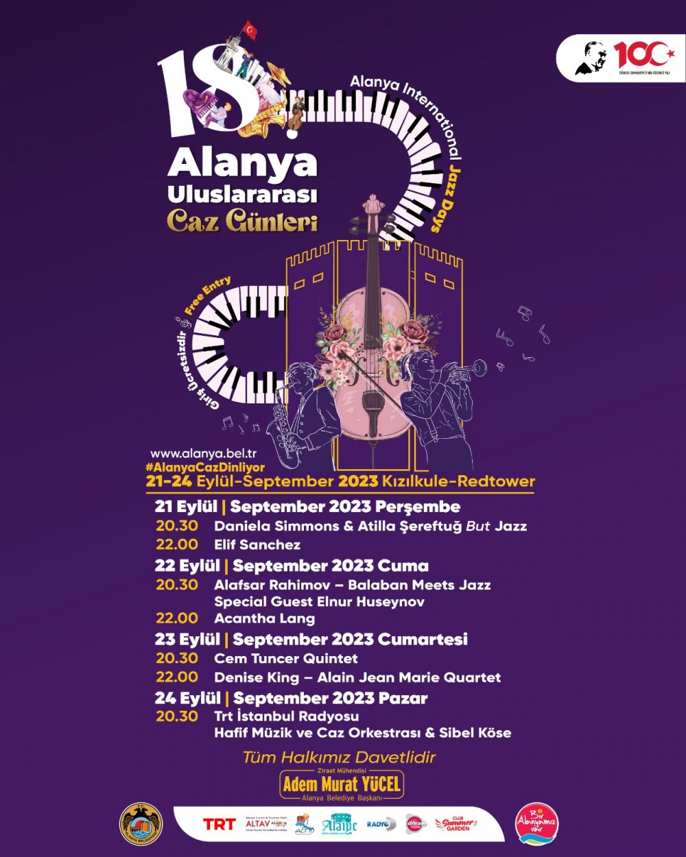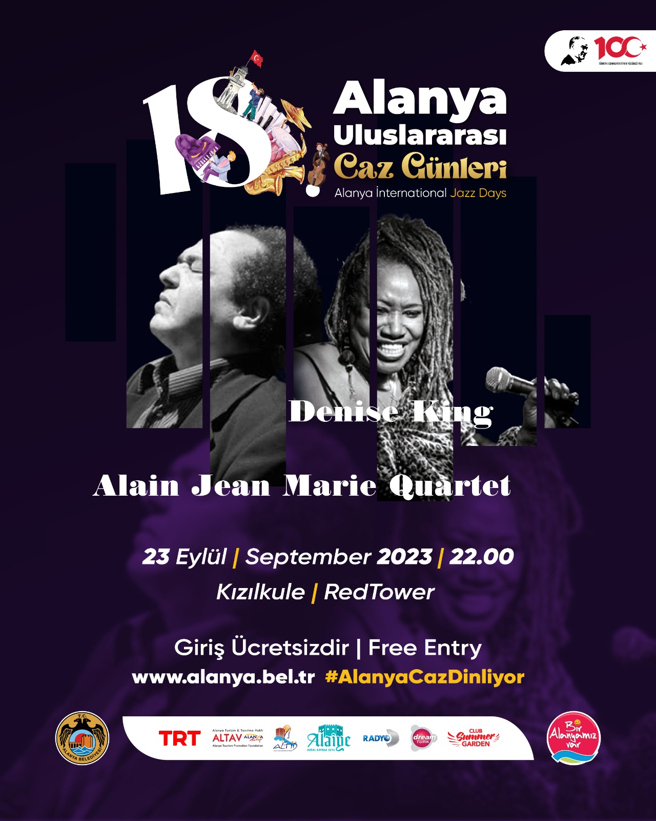 18. Alanya Uluslararası Caz Günleri üçüncü günü 23 Eylül Cumartesi günü Cem Tuncer Quintet yapacak. Saat 22.00’da ise Denise Kıng – Alain Jean Marie Quartet sahne alacak.