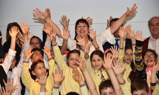 Alanya Belediye Tiyatrosu Çocuk Birimi Sorumlusu Nilbanu Engindeniz, sahneye gelen minik öğrencilerle birlikte şarkılar söyledi. Nilbanu Engindeniz’in en sevdiği şarkıları seslendiren öğrenciler, “Elbet Bir gün Buluşacağız” şarkısıyla Engindeniz’i hem duygulandırdı hem de mutlu etti.