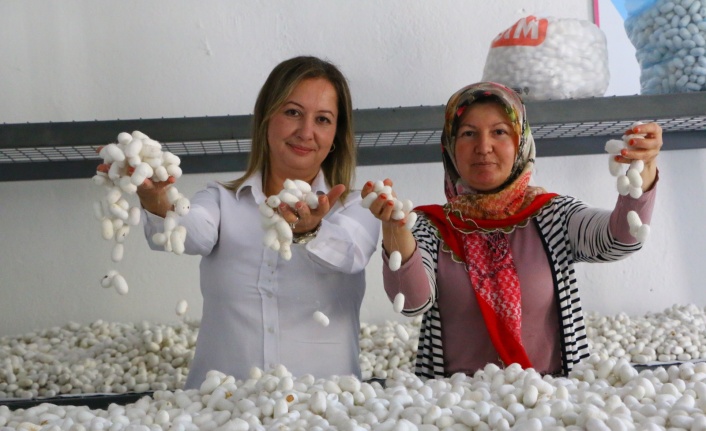 Eğitim atölyelerine katılan Kursiyer Havva Yetkin ise “İpek böceğinden üretilen iplerden çiçekler, zeytin, kardelen, portakal çiçeği, gül gibi aklınıza gelebilecek birçok değişik ürünlerin yapımını öğreniyoruz. Herkesin gelip bu ürünleri görmesini tavsiye ederiz. Köyümüzde böyle bir güzellik var bu güzelliklerin değerlendirilmesi gerekiyor. İlk defa ipek böceği ve kozasını gören çocuklar çok heyecanlanıyor. Okullardan öğrenciler İpek Evi’ni ziyaret etsinler, geçmişimizi unutmasınlar. İpek böceği çok değerli yeniden bölgemizde üretimi canlanıyor. Köylülerimizde bu sürece katkı sunmalı. Satış stantlarımız hazırlandı yeni sezonda yaptıklarımız sergilenecek. Başkanımız Muhittin Böcek’e çok teşekkür ediyoruz yıllardır bekliyorduk burasının açılmasını onun sayesinde açıldı sağ olsun var olsun” dedi.