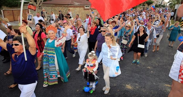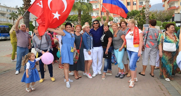 Mahmutlar Muhtarı Ahmet Top ve Mahmutlar'da bulunan Rus derneklerinin katkılarıyla yapılan etkinliklerde Rus ve Türk vatandaşlar ellerinde bayraklarla yürüyüş yaptılar. Barbaros Caddesi'nde 3 kilometre boyunca süren yürüyüşe esnaf ve vatandaşlar alkışlarla destek verdiler.