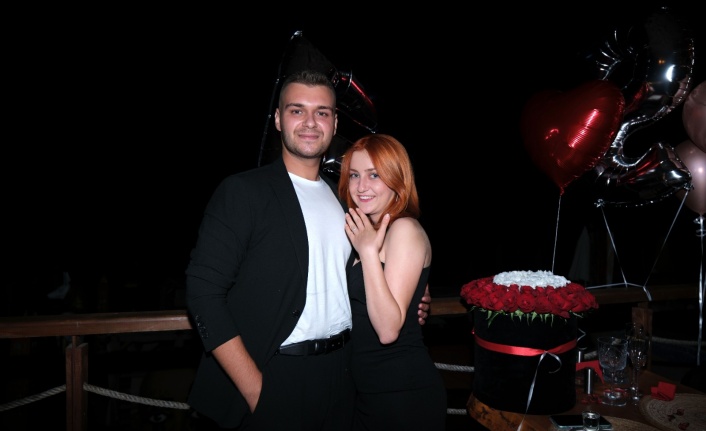 Alanya'nın genç girişimcilerinden müteahhit Safa Can Öztürk, Palm Beach'te sürpriz bir organizasyon düzenleyerek, Yazgan Emlak'ın sahibi Esra Yazgan'a hayatlarını birleştirmeyi teklif etti.
