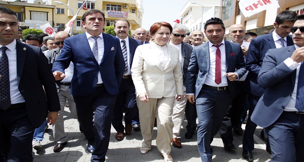 ‘Buna dur deme zamanı geldi’ diyen Akşener, “ Türkiye’nin hem iktidar hem muhalefet olan yönetim anlayışından ve düğmeye basılmış gibi bugün biten yarın çoğalan terör örgütü sarmalından, bu tiyatrodan sizin iradenizle kurtulacak. Bakan çocuklarının zengin olduğu Türkiye’den vatan çocuklarının iş ve aş bulduğu eşit şartlarda rekabet edebildiği Türkiye’yi sizin iradenizle geçeceğiz. MHP’yi AKP’nin arka bahçesi yaptırmayacağız. Türküm diyemeyenlere inat, ‘Ne Mutlu Türküm Diyene” ifadelerine yer verdi.