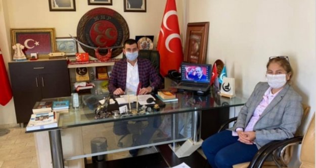 Milliyetçi Hareket Partisi (MHP) Alanya İlçe Başkanı Mustafa Türkdoğan ve Kadın Kolları Başkanı Sevim Bulut, Ramazan yardımları konusunda parti binasında istişare yaptı.