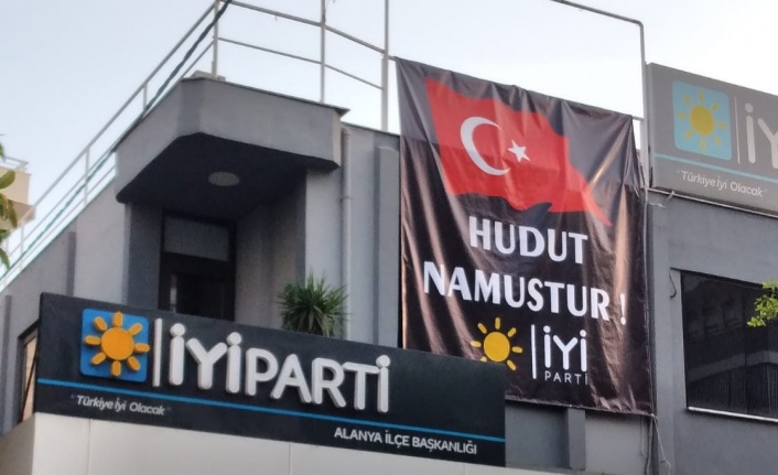 İYİ Parti Alanya İlçe Başkanlığı, parti binasına "Hudut Namustur" pankartı astı.