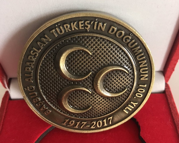 Genel Başkan Devlet Bahçeli toplantının son gününde Kurucu Genel Başkan Alparslan Türkeş'i unutmadı. Türkeş'in 100. doğum günü nedeniyle hazırlanan plaketler tüm il ve ilçe başkanlarına takdim edildi. Üzerinde 'Başbuğ Alparslan Türkeş'in Doğumunun 100. Yılı' yazan ve 3 hilalin süslediği plaketi Bahçeli'nin elinden alan isimlerden birisi de MHP Alanya İlçe Başkanı Mustafa Türkdoğan oldu. Türkdoğan bu değerli plaketi alarak, "Liderimiz Sayın Devlet Bahçeli Beyin, Başbuğumuz Alparslan Türkeş'in doğumunun 100. Yılı anısına yaptırdığı plaketimizi aldık. Bilge Liderimiz emir ve talimatlarını bize iletti." dedi.