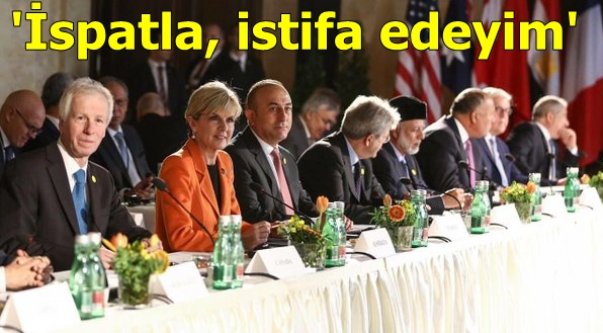 Dışişleri Bakanı Mevlüt Çavuşoğlu, Suriye toplantısında Rusya Dışişleri Bakanı Sergey Lavrov'a "Türkiye'nin IŞİD'e yardım ettiğine ilişkin tek bir deliliniz varsa istifa etmeye hazırım" dedi.