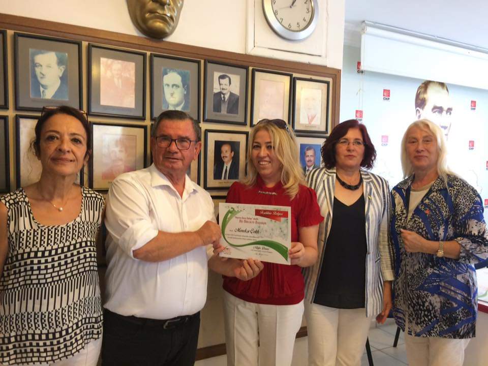 Cumhuriyet Halk Partisi Antalya İl Kadın Kolları Yönetimi 31 Mart yerel seçimlerinde "Millet İttifakı" için çalışan kadınlara teşekkür belgesi takdim etti.