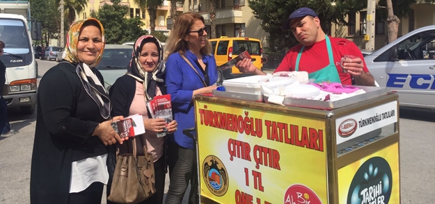 MHP Alanya İlçe Kadın Kolları da çalışmalarına aralıksız devam ediyor. Dün sokağa inen kadınlar vatandaşlardan destek isteyip 'evet' yazılı afişleri vatandaşlara dağıttılar. MHP Alanya İlçe Kadın Kolları Başkanı Sevim Bulut önderliğindeki kadınlar Şevket Tokuş Caddesi ve Alanya Pazar Pazarı'nda esnaflarla tek tek görüşerek destek istediler, bilgilendirmede bulundular.