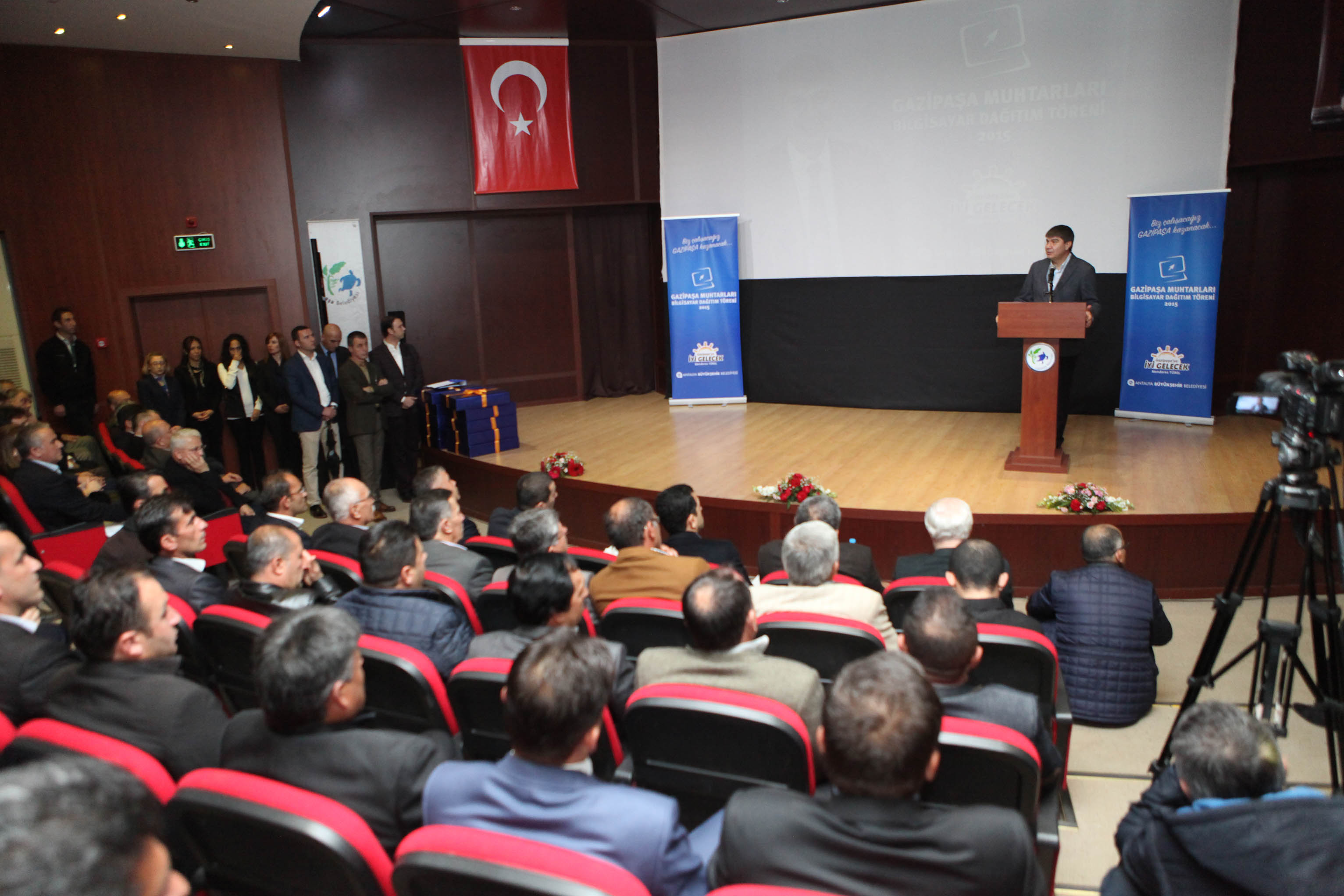 Büyükşehir Belediye Başkanı Menderes Türel, MUBİM sistemini daha verimli kullanabilmeleri için Gazipaşa’da muhtarlara bilgisayar hediye etti. Gazipaşa Kültür Merkezi’nde gerçekleşen 46 muhtara bilgisayar dağıtım törenine Gazipaşa Belediye Başkanı Adil Çelik de katıldı