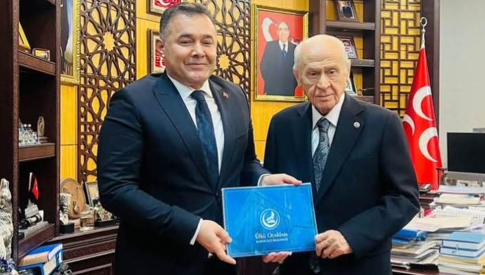 “Türk Dünyasının Bilge Lideri, Sayın Genel Başkanımız Devlet Bahçeli’yi makamında ziyaret edip, hayır dualarını aldık. Türkmen Beyimiz, Alanyamıza olan ilgi ve alakalarını yineleyerek, selamlarını iletti. Bilge liderimize nazik kabulü ve ilgileri için teşekkür ederim. Rabbim sağlıklı ve huzurlu ömürler versin.”