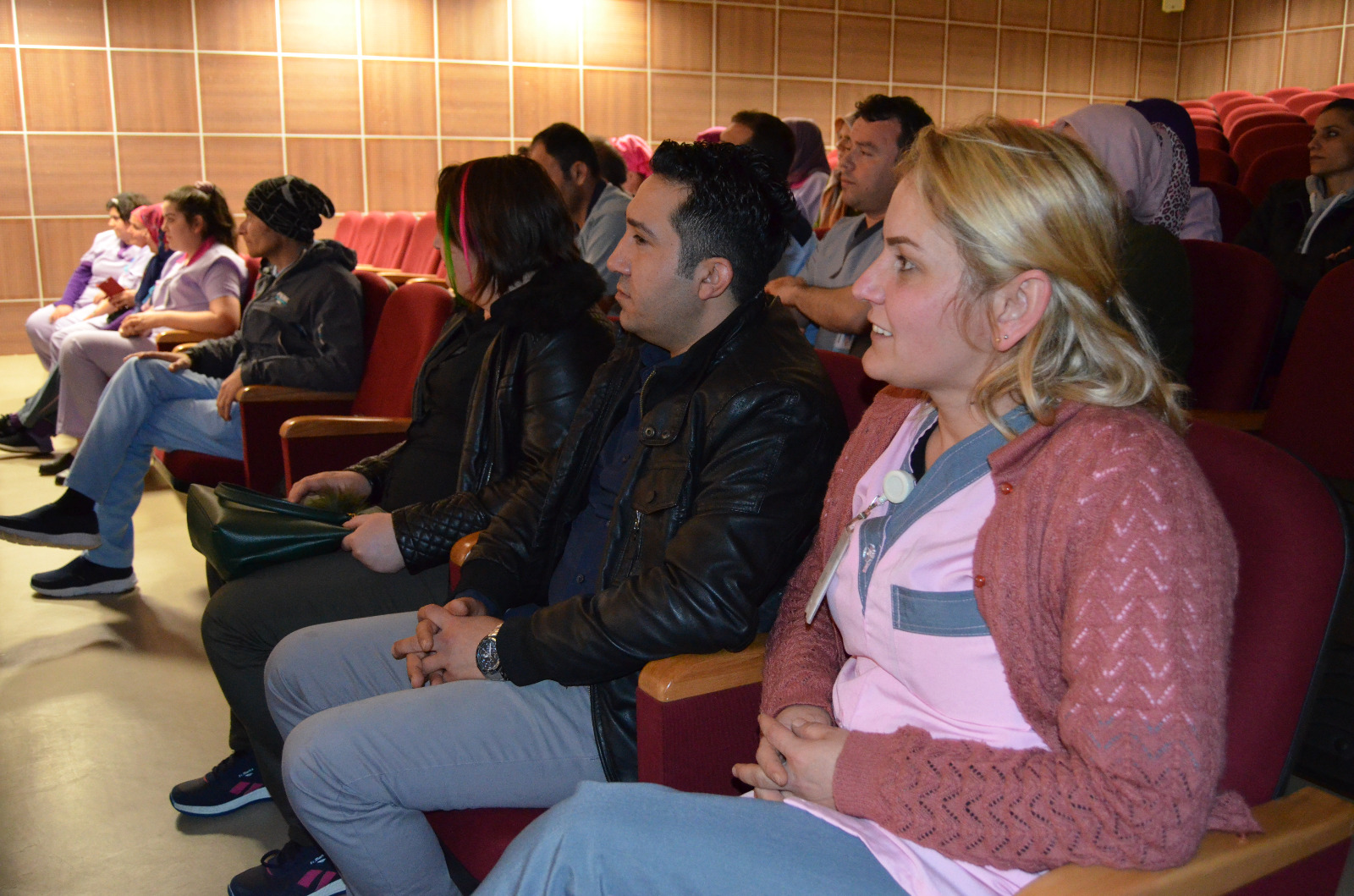 Enfeksiyon kontrol hemşiresi Naciye Özen tarafından gruplar halinde verilen eğitimde; temizlik personellerine hastane enfeksiyonları, sorun mikroorganizmalar, izolasyonlar, koruyucu ekipman kullanımı, atık yönetimi, kan yolu ile bulaşan hastalıklar, hastane temizliği ve el hijyeni konuları anlatıldı. Özen; hastane enfeksiyonlarının hastaların hastanede ve yoğun bakımda kalış süresini uzatan bir faktör olduğuna dikkati çekti. Bu durumun hasta tedavi maliyetini ve işgücü kaybını da artırdığını sözlerine ekleyen Naciye Özen; “Bu yüzden tüm hastane personelinin bu alanda bilinçlendirilmesi gerekmektedir. Hazırlanan eğitim programlarımızı hastanenin ihtiyacına göre ve tıbbi gelişmeler ışığında belirli aralıklarla gözden geçirerek tekrarlayacağız” dedi.